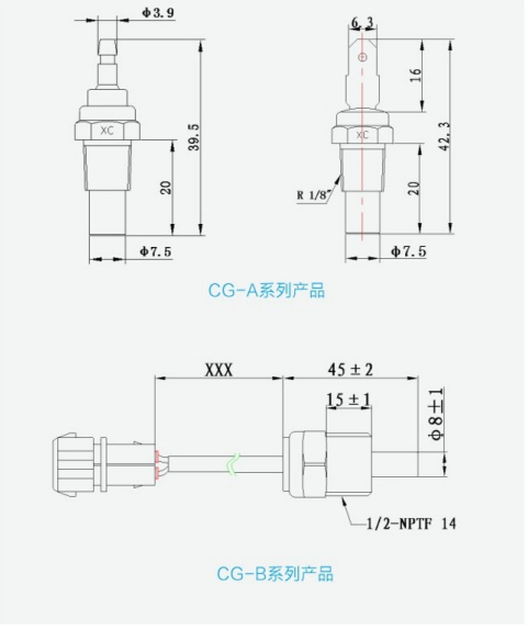 CG系列是為熱敏電阻式水溫傳感器,與汽車水溫表串聯(lián)在電路中,依據(jù)感應(yīng)汽缸水套內(nèi)水的溫度,自動(dòng)調(diào)節(jié)電阻 值,動(dòng)態(tài)測量發(fā)動(dòng)機(jī)水套內(nèi)水溫,以使駕駛員及時(shí)了解發(fā)動(dòng)機(jī)水套內(nèi)冷卻水的工作溫度是否正常。